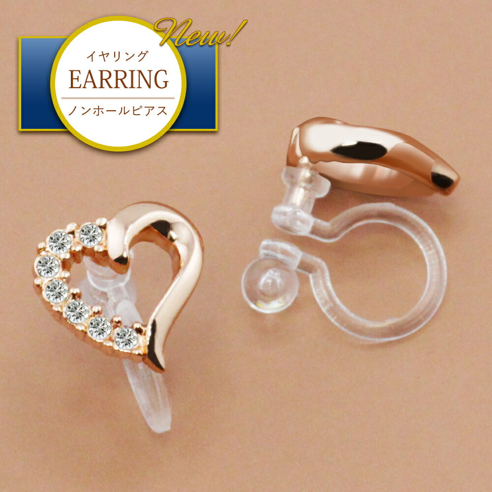 イヤリング レディース 小ぶり 痛くない ノンホールピアス 樹脂イヤリング ピアス見え 挟むだけ 金属アレルギー ニッケルフリー オープンハート ジルコニア 18金 18kコーティング ピンクゴールド K18GP