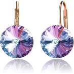 【並行輸入品】スワロフスキー クリスタル ラウンド ドロップ イヤリング レディース 14K 金メッキ 低刺激性 レバーバック フープイヤリング