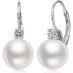 【並行輸入品】Jiamiaoi 18Kホワイトゴールドメッキ スパークリングパールイヤリング レディース スワロフスキーパール/淡水パール レバーバッ