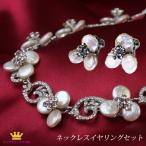 ネックレス イヤリング セット レディース オシャレ 淡水真珠 パール スワロフスキー 花 クローバー