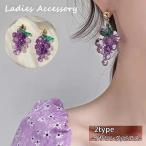 スタッドピアス イヤリング レディース 女性 アクセサリー ファッション雑貨 ビーズ ブドウ 果物 フルーツ 半透明 パープル かわいい キュート カ