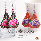 ピアス フープピアス 大ぶり 揺れる 刺繍 花 個性 レトロ 上品 二次会 パーティー お呼ばれ エスニック アジアン ファッション
