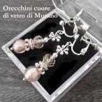 レディースイヤリング イタリア製ベネチアンガラス ホワイトゴールドフォイル 小さめ ドロップイヤリング パステルピンク