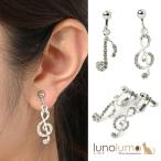 メール便送料無料 イヤリング レディース 音符 ト音記号 音楽 キラキラ ラインストーン 左右非対称 アシンメトリー E