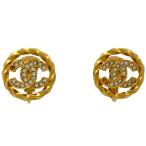 シャネル CHANEL ココマーク ラインストーン イヤリング CC ラウンド イヤリング GP ゴールド レディース 中古