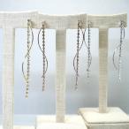 ノンホールピアス イヤリング 樹脂 揺れる ラインストーン スリム ロング ウェーブワイヤー 痛くなりにくい レディース 金属アレルギー対応