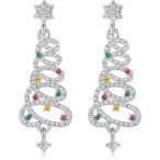 【並行輸入品】GAOKOXI シルバークリスマスツリーイヤリング レディース クリスマスホリデーイヤリング クリスマスラインストーンダングルイヤリング
