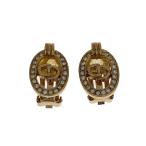 Christian Dior◆オブリークロゴ/ラウンド/イヤリング/ラインストーン/ゴールド/レディース
