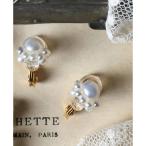 イヤリング 「malle la brocante/マルラブロカント」淡水パールと水晶のプチコラージュの痛みにくいコラージュイヤリング レディース