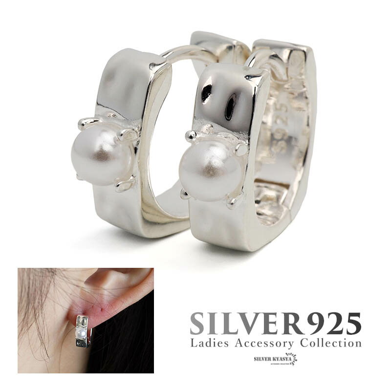 \10%OFFクーポン/パールピアス 天然淡水パール 一粒 シルバー925 フープピアス 両耳用 2点セット シルバーピアス レディース シルバー シンプル 大人っぽい かわいい 人気