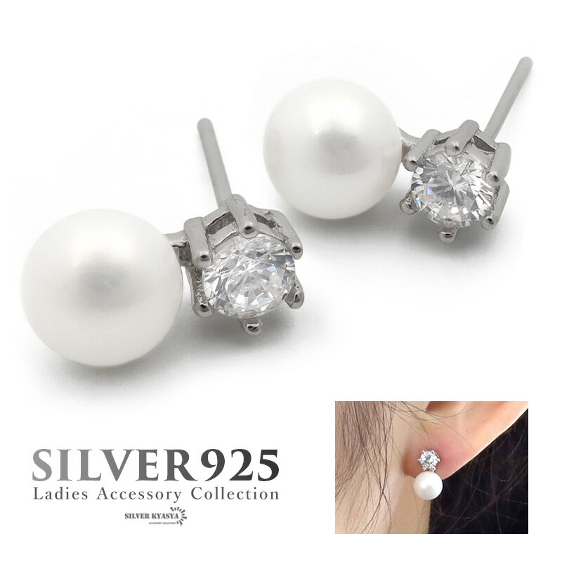 \10%OFFクーポン/ピアス 金属アレルギー 対応 淡水パール キュービックジルコニア CZ シルバー925 S925 シルバー silver 銀色 スタッドピアス パール イヤリング ジュエリー ストーン フェミニン シンプル 両耳用 2点セット
