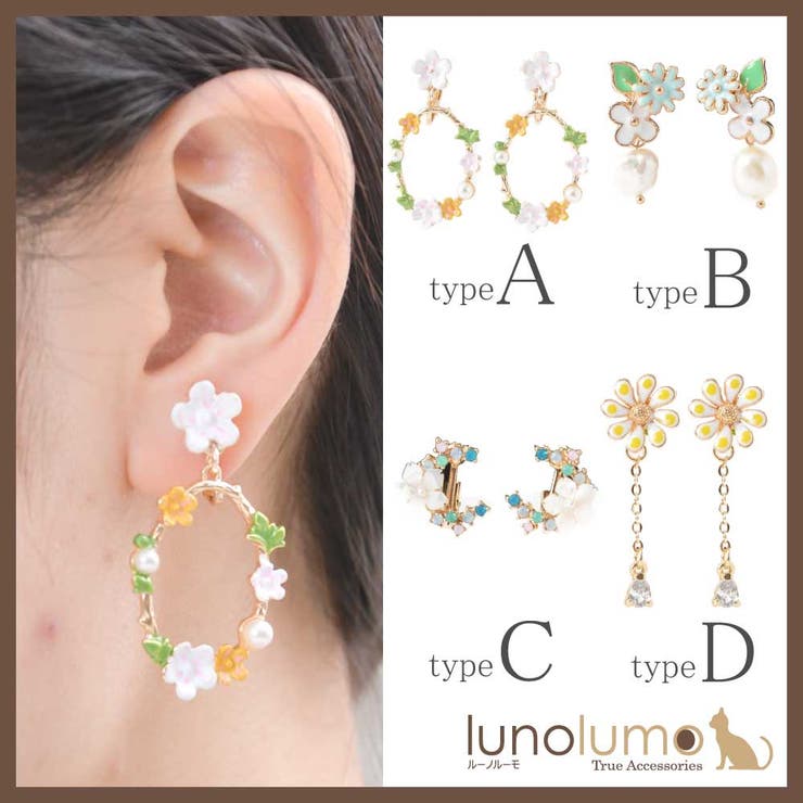 【10%OFFクーポン!2/10(火)1:59まで】lunolumo SALE イヤリング レディース 花 淡水パール 三日月 キュービックジルコニア シェルフェミニン アクセサリー