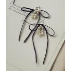 イヤリング シャワー パール スエード リボン イヤリング レディース