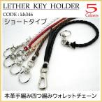 本革手編四つ編みショートウォレットチェーンキーホルダー メンズ レディース