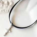 十字架 チョーカー キュービックジルコニア クロス サテン 細め レディース
