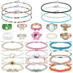 【並行輸入品】Sanfenly 28個 レディース ビーズチョーカーネックレス ボヘミアンシードビーズネックレス ストリングブレスレット フレン