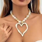 チョーカー ペンダント ネックレス チェーン ハート ビーズ パール LOVE レディース 誇張 大 透かし Love 2024 トレンド