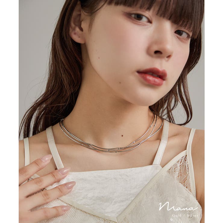 【10%OFFクーポン!1/29(木)1:59まで】Fashion Letter niana ニアナ ツイッギーメタルネックレス レディース アクセサリー ショート チョーカー ビーズ 3連 スライド式 アジャスター ゴールド シルバー 普段使い フォー