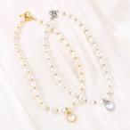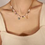 チャーム チョーカー ネックレス ストーン ハート ビーズ パール レディース ナチュラル 淡水 ハンドメイド