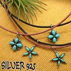 シルバー 925 銀製品 銀 トップ と レザー チョーカー 革 花 ネックレス レディース 天然石 ターコイズ t054