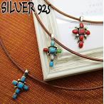 シルバー 925 銀製品 銀 トップ と レザー チョーカー 革 クロス 十字架 ネックレス レディース 天然石 t055