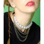チョーカー an meets zakka パール&3連ドレープチェーンレザーコンビチョーカー レディース メンズ