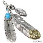 シルバー925 フェザー トップ 金縄 フェザーネックレス ターコイズ トルコ石 ハンドメイドネックレス インディアンジュエリー ネイティブ メンズ レディース