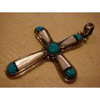 ハンドメイド!インディアンジュエリー クロスペンダント・アリゾナ州ターコイズ・シルバーアクセ ネックレス TOP 925シルバー 銀 メンズ レディース