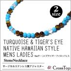 ターコイズ タイガーアイ ネックレス 4mm ネイティブ ハワイアンジュエリー インディアンジュエリー 天然石 メンズ レディース 金属アレルギー ペアネックレス