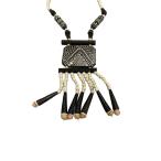 ネックレス メンズ レディース ブラス ウッドビーズ アンティークマリアプレート フェザーチャーム スカル ブラックスピネル