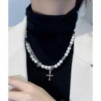 ネックレス 「Bz」クロスアクリルパール2連ネックレス ユニセックス(MA/EK456) メンズ レディース