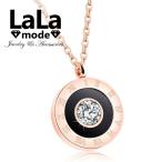 ネックレス レディース AAA キュービック ジルコニア ピンクゴールド オニキス調 仕上げ ローマ数字