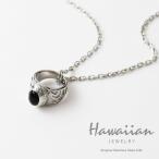 ハワイアンジュエリー ネックレス レディース メンズ ステンレス 金属アレルギー対応 オニキス カレッジリングモチーフ スティールシルバーカラー