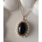 ネックレス 「mallelabrocante/マルラブロカント」オニキスとヴィンテージパールの大きなオーバルネックレス/金属アレルギー対応 レディース