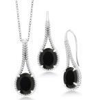 【並行輸入品】[Gem Stone King] 12カラット 天然 オニキス ネックレス ピアス セット レディース シルバー925 8月 誕生