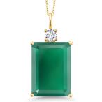 Gem Stone King 15.91カラット 天然 グリーンオニキス ネックレス レディース ラボグロウンダイヤモンド シルバー925 18金 イ