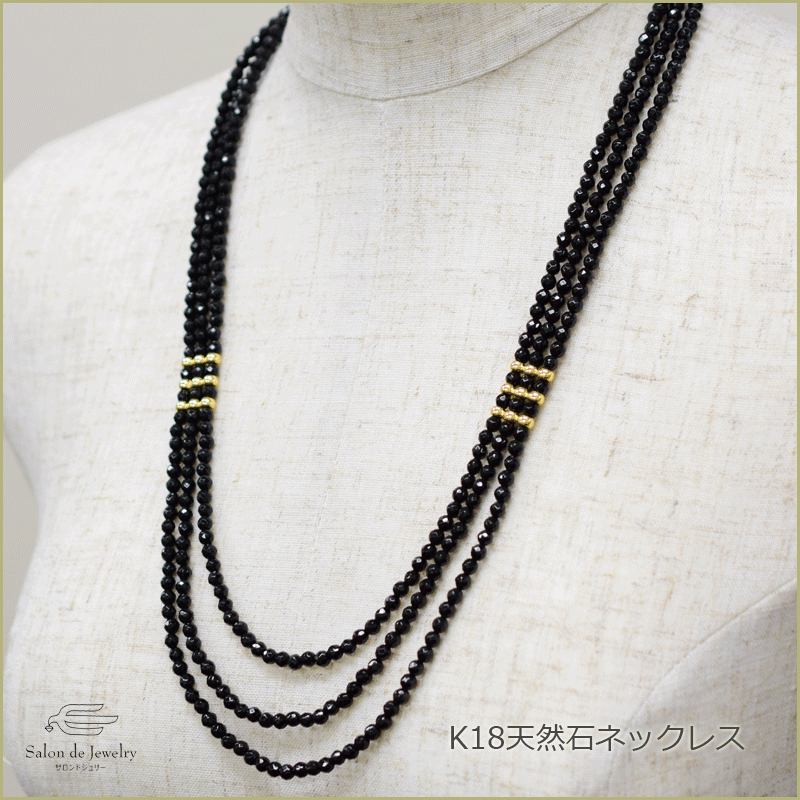\クーポンで20%OFF!24日(金)20:00-23:59/【 送料無料 】 天然石 3連 ロング ネックレス オニキス K18 | 40代 50代 60代 70代 誕生日 誕生 プレゼント 母 アクセサリー 8月 誕生石 母の日 半貴石 パーティー 18金 ギフト 宝石 還暦 喜寿 祝い