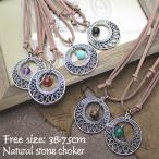 天然石 革ひも レディース ネックレス 長い ペンダント 調節可 フリーサイズ アメジスト タイガーアイ ターコイズ オニキス グリーンアゲート カーネリアンフリーサイズ 4-7852