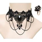 チョーカー クロス ローズ レース ベロア 全5種類 中世アンティーク レディース ネックレス アクセサリー リング(オニキス風)