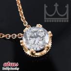 ネックレス レディース キュービックジルコニア 一粒王冠 大粒 ミル打ち ピンクゴールドk18 チェーン 人気 18金 送料無料 セール SALE