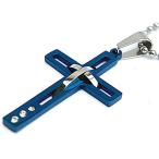 【並行輸入品】ステンレススチール メンズ レディース ボーイズ ブルー 透かし細工 クロスペンダントネックレス キュービックジルコニア付き 22