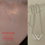 ネックレス レディース シルバー925 スワロフスキー W字 アルファベット 銀素材 S925 上品 送料無料 アレルギー
