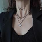 2連 ネックレス レディース 重ね付け チェーンネックレス ペンダント シンプル ジュエリー おしゃれ アクセサリー セット シルバー