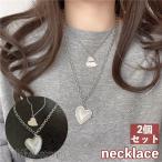 ネックレス ペンダント 2個セット レディース 女性 アクセサリー 二連 パール調 チェーン ハート 大きめ 存在感 おしゃれ 可愛い カジュアル ギ