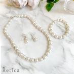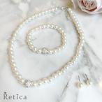レティカ Retica ホワイトパールシルバービジューアクセサリー3点セット [ネックレス+ピアス+ブレスレット] (ホワイト)
