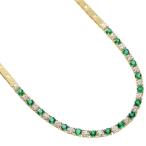 ネックレス レディース 18金 K18 エメラルド ダイヤモンド テニスネックレス 艶消し ゴールド 地金 テニスチェーン 手造り 爆買