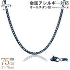 チェーン ネックレス チタン 喜平 IPブルー 75cm 3.5mm幅 ロング キヘイ レディース メンズ シンプル 日本製 金属アレルギー対応 74cm 73cm 72cm 71cm D75BF
