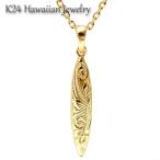 ペンダント ハワイアンジュエリー K24 純金 コーティング 24KGP サーフボード ネックレス プルメリア