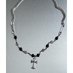 ネックレス 「ブラックビーズ」クロスネックレス レディース