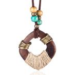 【並行輸入品】ブラウン木製ビーズペンダント ロングネックレス チョーカーネックレス レディース ヴィンテージジュエリー, ワックスストリング,